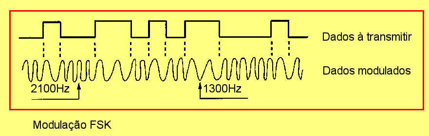 Quando o bit enviado for "1" a portadora não é alterada, quando "0" é alterada para mais alta.