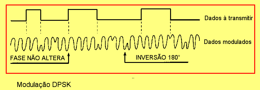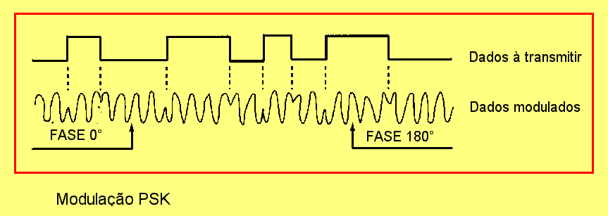 Ao bit "0" corresponde a fase 0° e ao bit "1" corresponde a fase de 180° da portadora.
